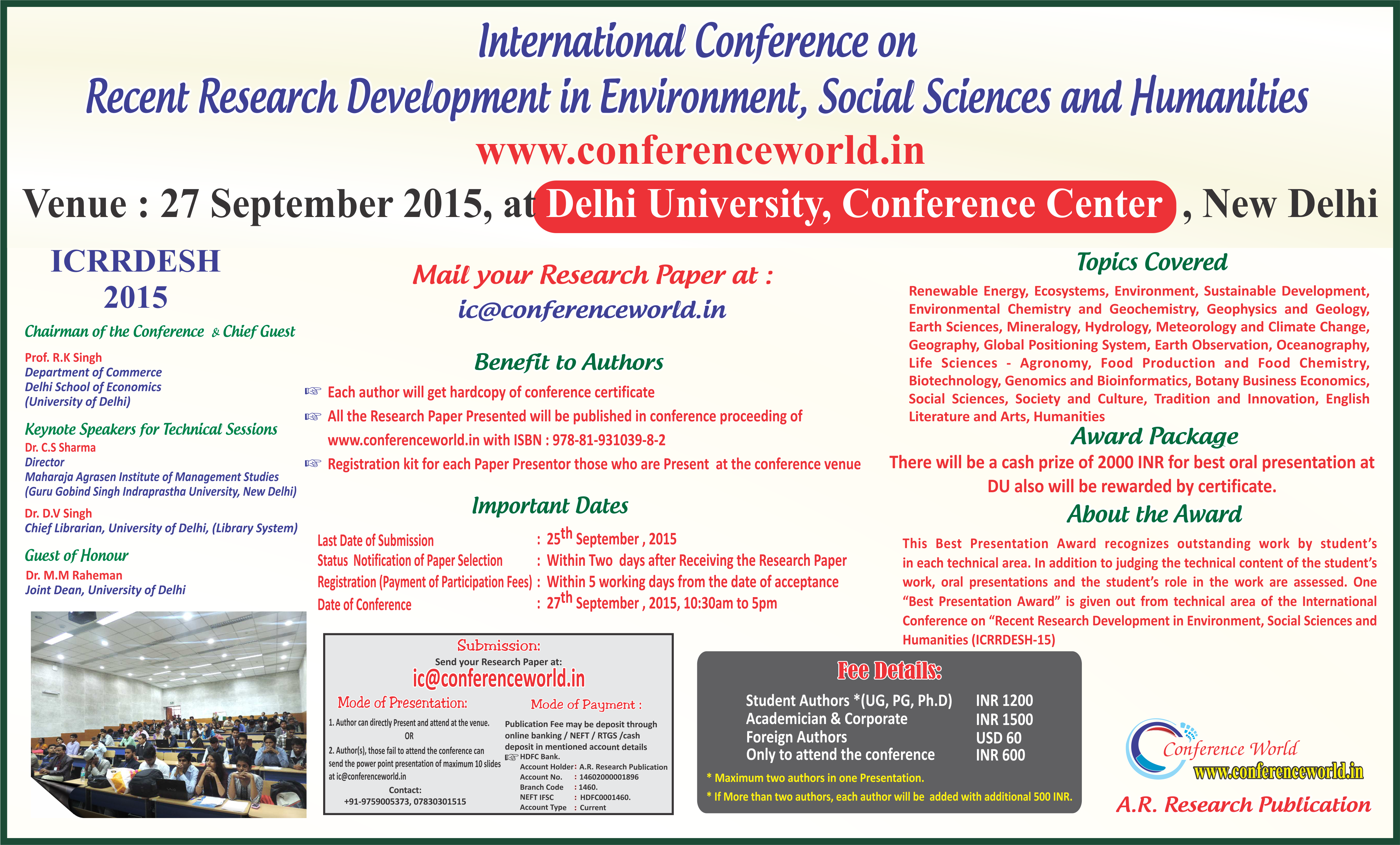 International Conference on “Recent Research Development in Environment, Social Sciences and Humanities” (ICRRDESH-15)