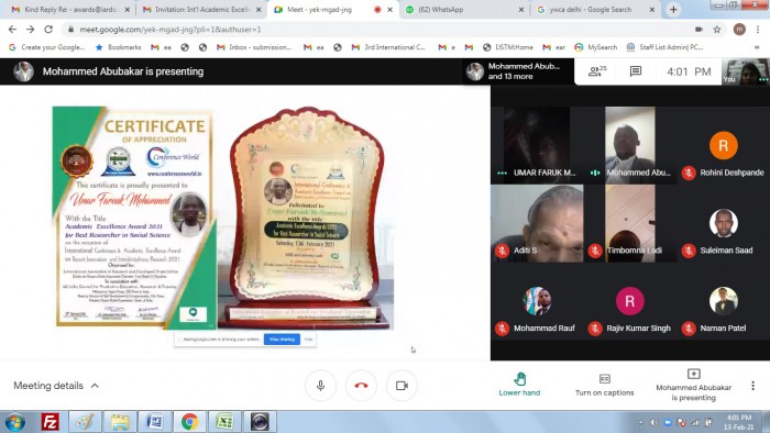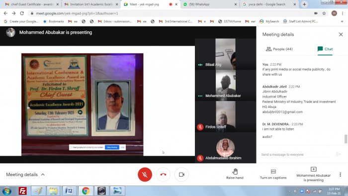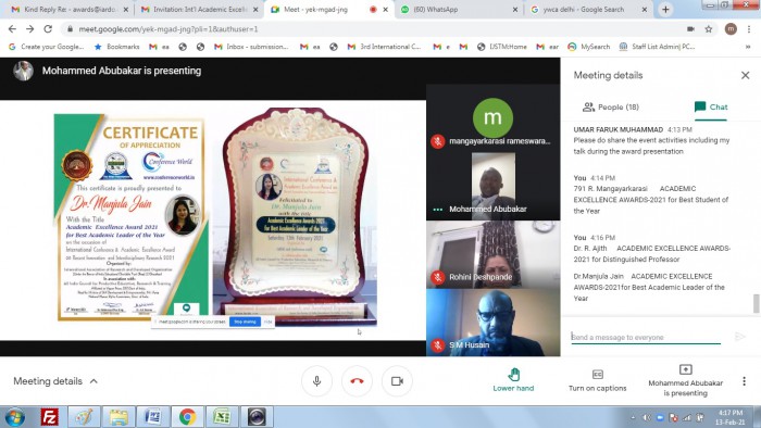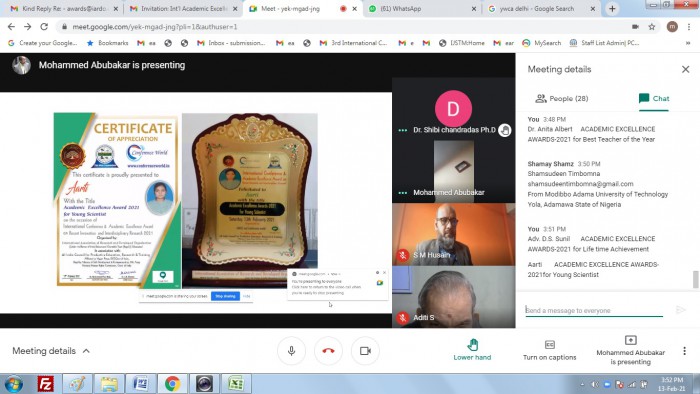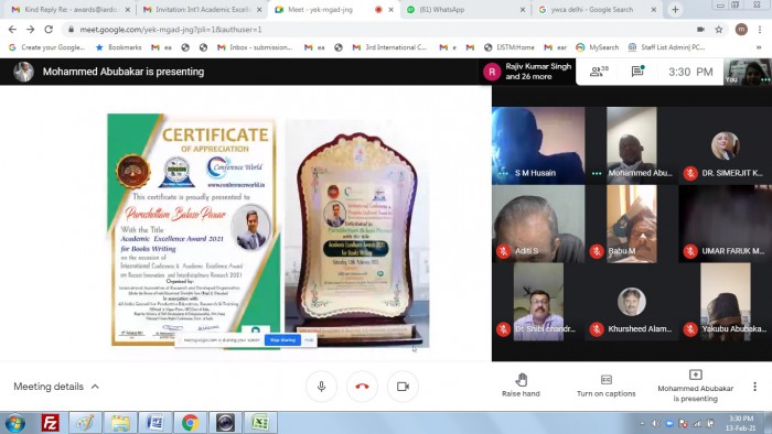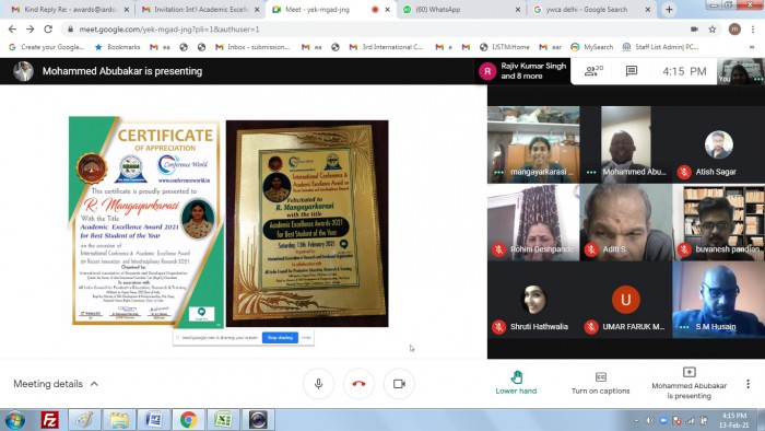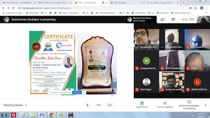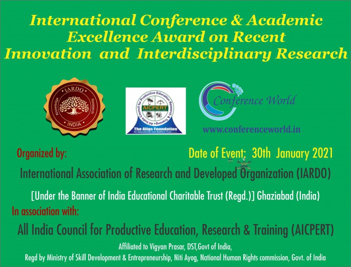 Conference: International Conference & Academic Excellence Award on Recent Innovation and Interdisciplinary Research (AEA-2021) Email: awards@iardo.com