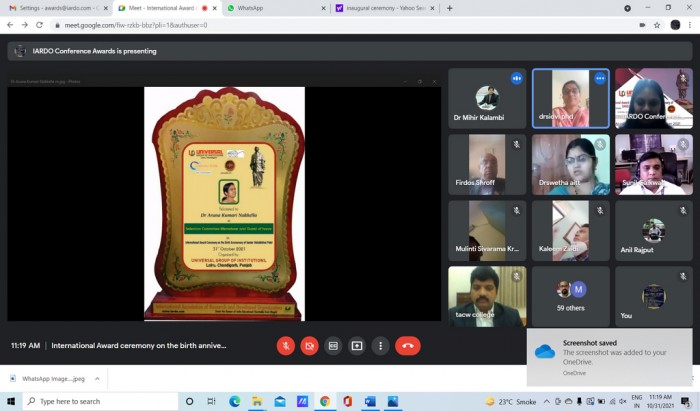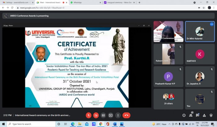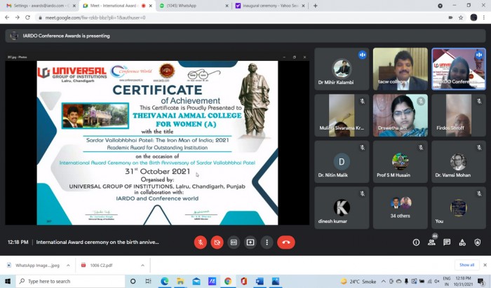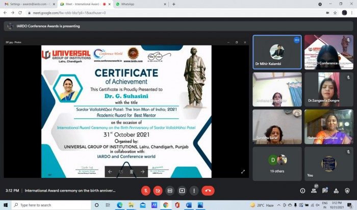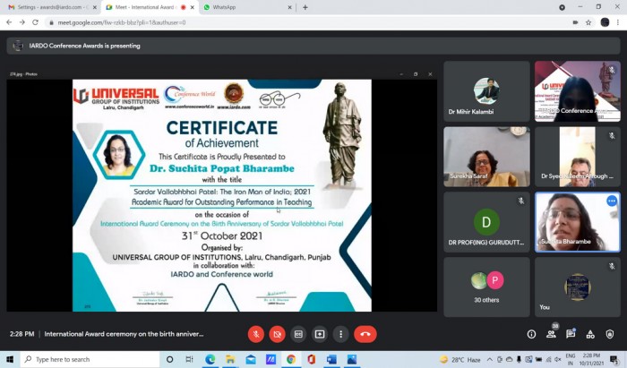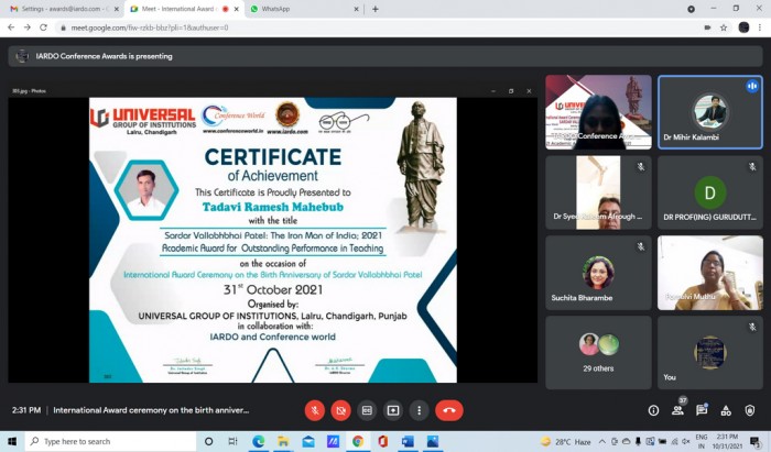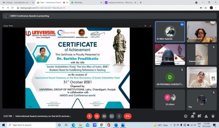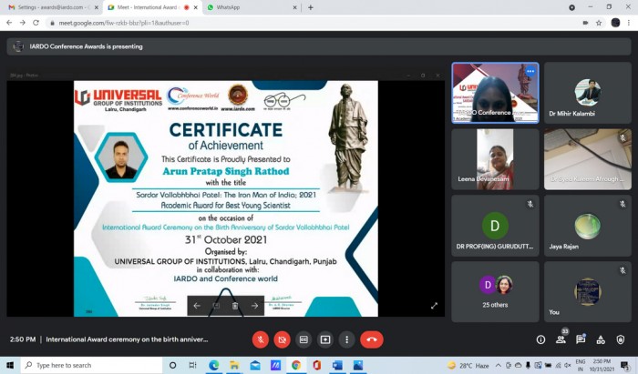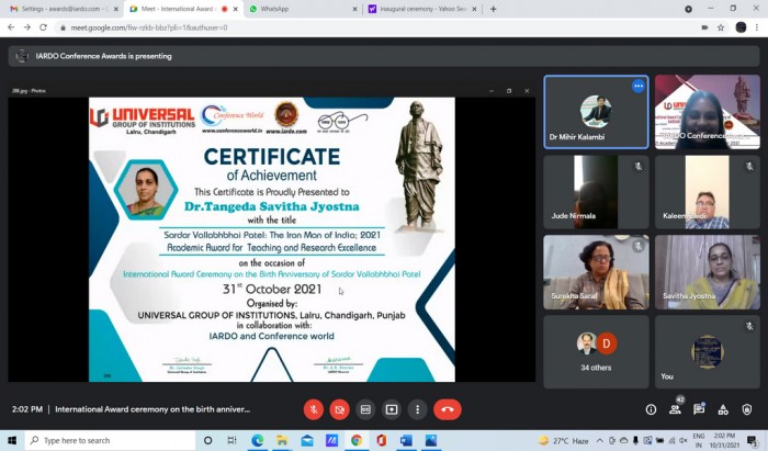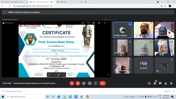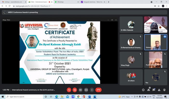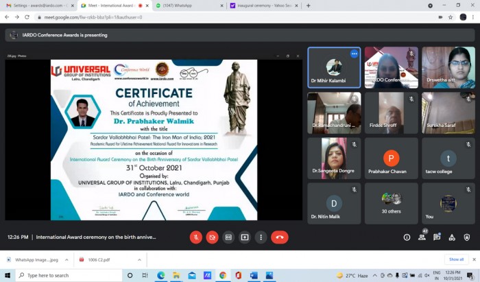 Conference: International Award ceremony on the birth anniversary of Sardar Vallabhbhai Patel- The Iron Man of India; 2021 Academic Awards Email: awards@iardo.com