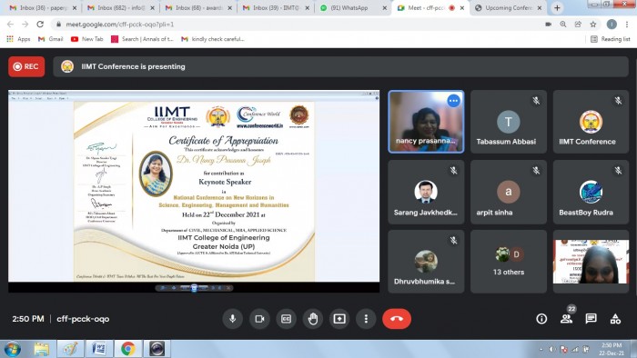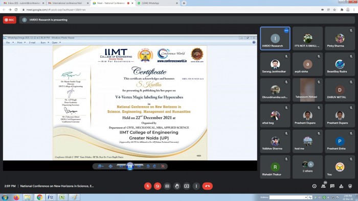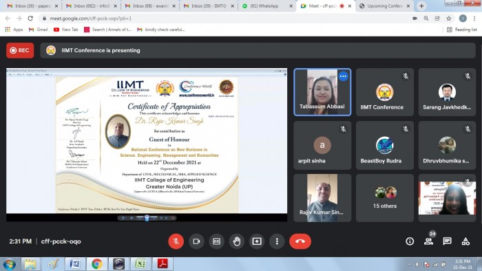 Conference: National Conference on New Horizons in Science, Engineering, Management and Humanities (SEMH-2021) Email: iimt@conferenceworld.in