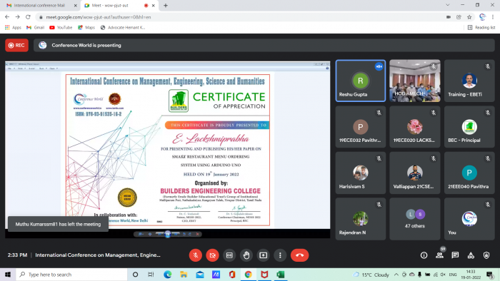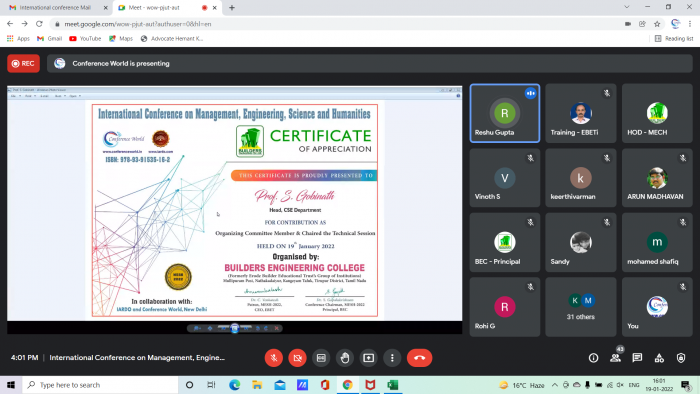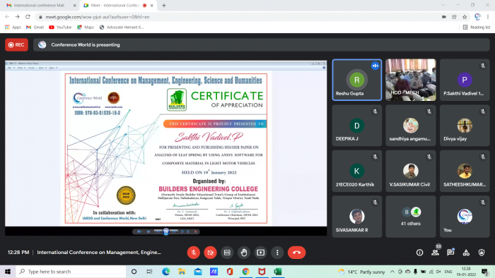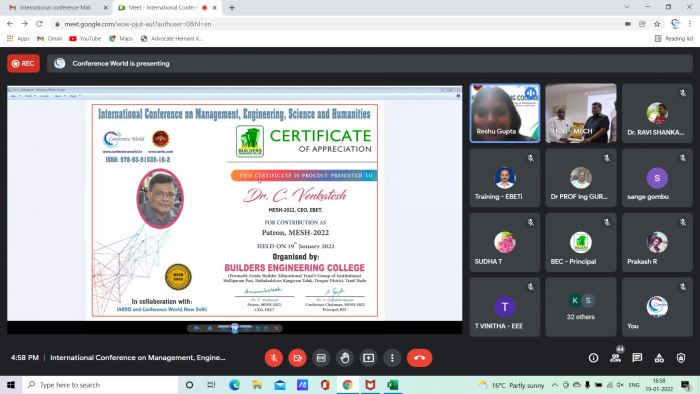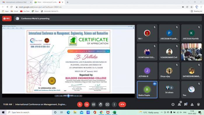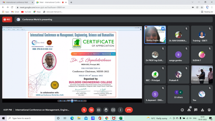 Conference: International Conference on Management, Engineering, Science and Humanities (MESH -2022) Email:editor@conferenceworld.in